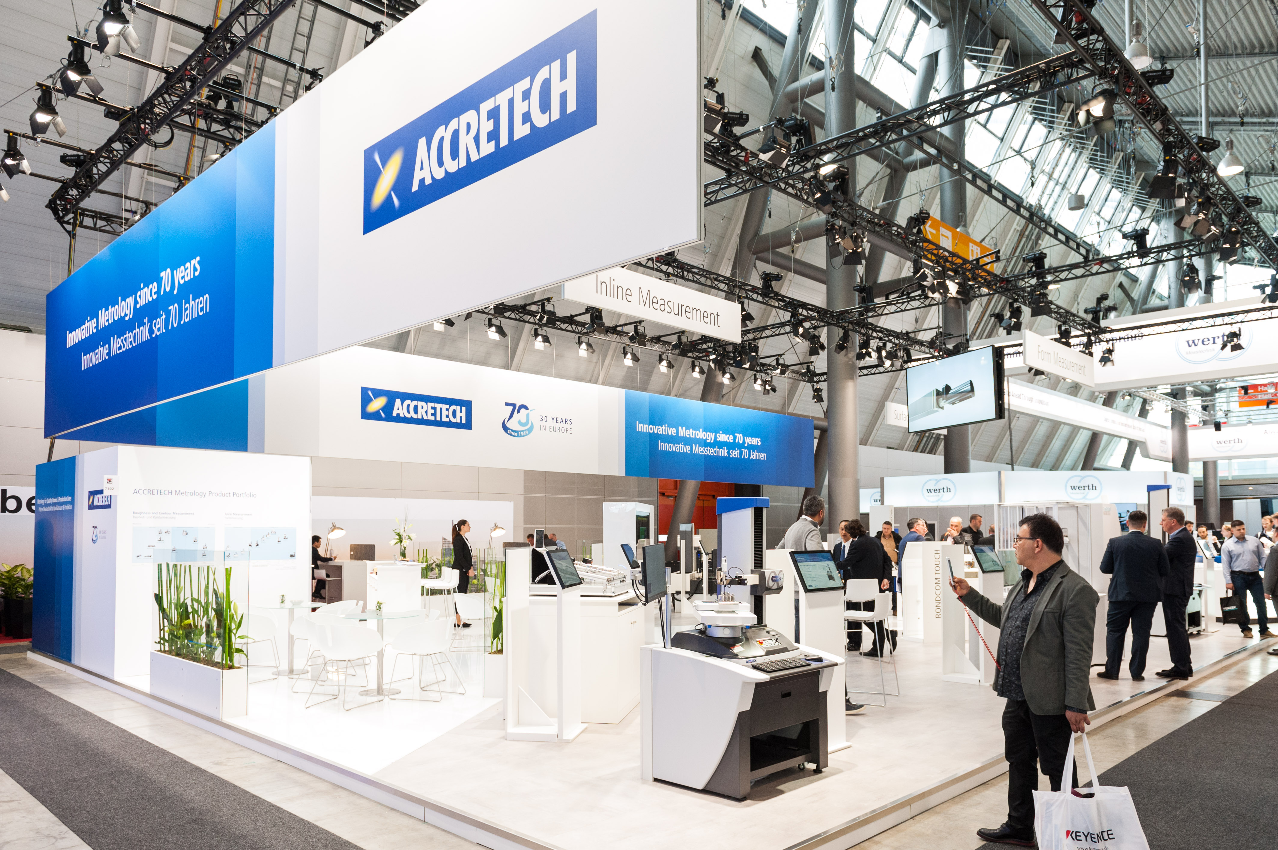 Bei der Internationalen Messe für Qualitätskontrolle Control 2019 in Stuttgart feierte Accretech unter dem Motto „Innovative Metrology since 70 years“ Jubiläum. Der Markenbanner bestand aus dynamischen Flächen, die impulsartig den Blick auf die Messe-Botschaften öffnen. Ich entwarf die visuelle Kommunikation des Messestands mit Markenbannern, Produktinformationen und interaktiven Produktstelen. Zudem übernahm ich die Kommunikation im Messeumfeld mit Bannern, Plakaten, Anzeigen, Online-Anwendungen, Wegweisern und Bodenaufklebern. Das Ergebnis: ein stimmiges Erscheinungsbild für einen ganzheitlichen Auftritt. Messebau: fairtastix GmbH Fotos: Hempler