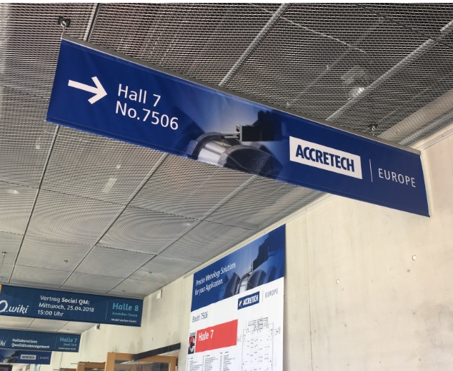 Bis heute findet sich das sorgfältige, inhaltsstarke und prägnante visuelle Messekonzept sowie die eigens entwickelte grafische Sprache auf zahlreichen Messen für Accretech im In- und Ausland wieder.